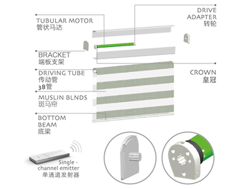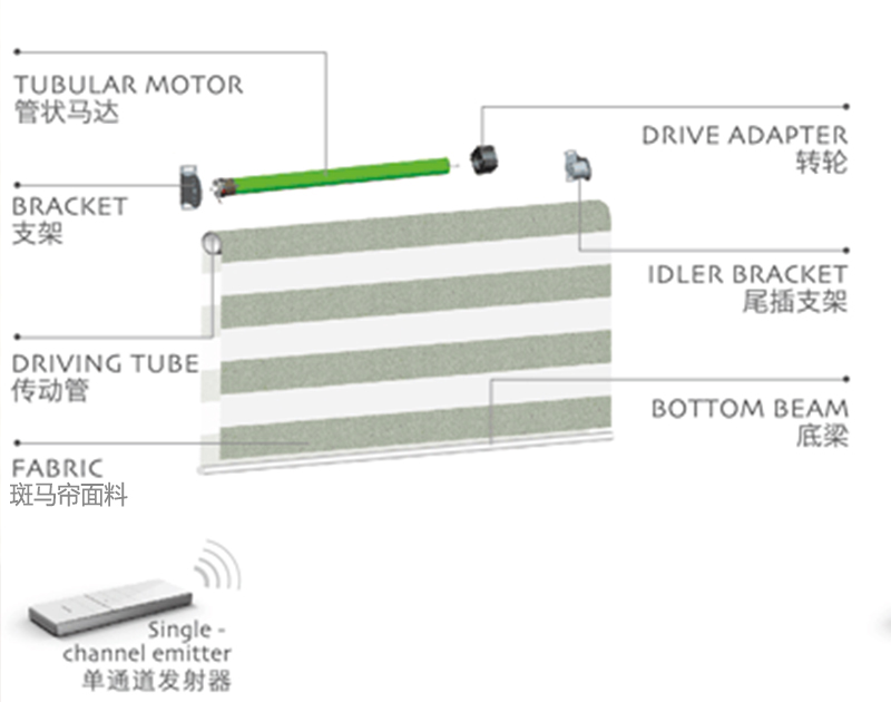 電動(dòng)斑馬簾,是電動(dòng)卷簾的一個(gè)拓展產(chǎn)品,多應(yīng)用于酒店,高檔住宅的臥室,辦公室的落地窗等場(chǎng)合。電動(dòng)斑馬簾