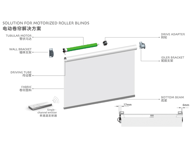 MotorizedRollerBlinds電動卷簾“電動卷簾”是采用管狀電機(jī)為動力的一種電動化卷簾機(jī)構(gòu)。它的操作只需按動控制系統(tǒng),操作簡